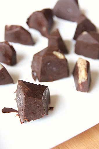 Imam neke kalupe za led u formi nepravilnih kocaka, kao lomljeni led. Davno sam te kalupe kupila i ne sećam se kad sam ih koristila, znam da mi već godinama čuče u nekom ćošku. Pošto nemam ozbiljne kalupe za praline pomislila sam da bi ovi za led mogli dobro da posluže, naročito što daju stvarno zanimljive oblike.